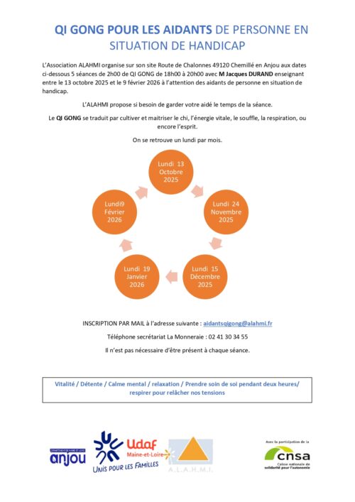 Atelier Qi gong pour les aidants de personnes en situation de handicap organisé par ALAHMI à Chemillé