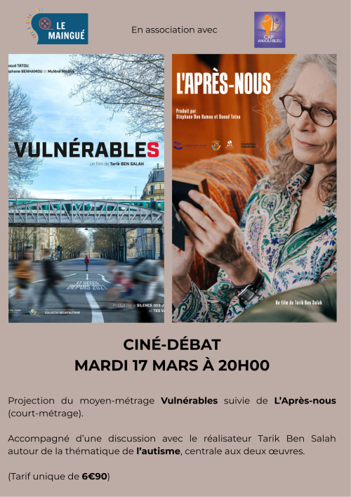 Dans le cadre d’actions de sensibilisation autour du handicap et de l’inclusion, Tarik Ben Salah a récemment produit un nouveau film documentaire intitulé VULNÉRABLES. L’association Cap Anjou Bleu organise sa projection en partenariat avec Cinéma Le Maingué de Segré.