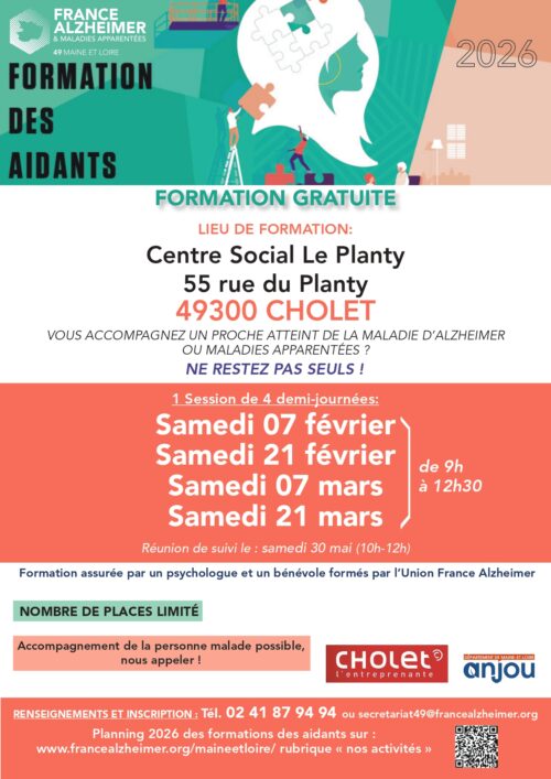 Formation des aidants organisée par l'association France Alzheimer 49 à Cholet des samedis matins