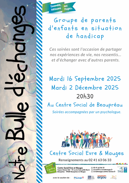 "Notre bulle d'échanges" groupe d'échanges de parents d'enfants en situation de handicap à Beaupréau