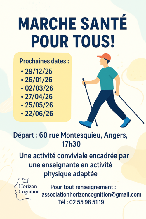 Sortie Marche Santé pour les personnes aphasiques et leurs aidants proposée par Horizon Cognition à Angers